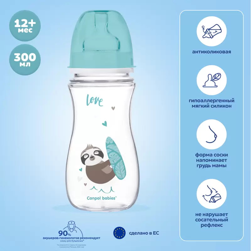 Бутылочка для кормления Canpol babies Exotic Animals c широким горлом 300 мл, 12+ мес, 35/222 голубой