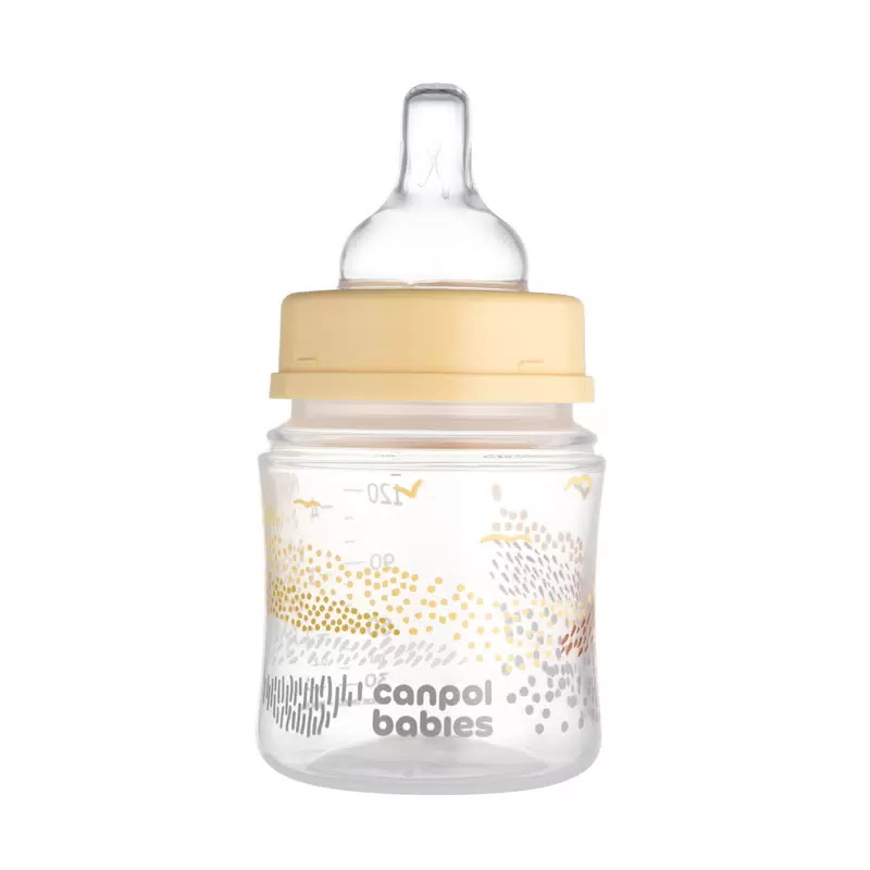 Антиколиковая детская бутылочка для кормления новорожденных 0 120 мл Canpol babies коллекции Mountains была создана специально для детей с первых дней жизни. Гарантия легкого начала грудного вскармливания - бутылка для воды, смеси и молока позволяет сочетать грудное вскармливание и кормление из бутылочки. Эффективный антиколиковый клапан. Предотвращает образование пузырьков воздуха в пище, спасает от коликов и чрезмерного скопления газов. Широкое горлышко. Позволяет легко промывать и наполнять бутылочку. Удобная стерилизация. Бутылочку можно простерилизовать в микроволновой печи. Мягкая силиконовая соска. Исключительно мягкий гипоаллергенный силикон не раздражает нежные десна новорожденного малыша. Имитирует грудь мамы. Новорожденным будет легко держать бутылочку в руках благодаря её эргономичной форме. С точной и четкой мерной шкалой. Облегчает процесс приготовления пищи. Исключительно безопасные материалы. Интересный современный дизайн. Детские бутылки Canpol babies не содержат Бисфенол А. Подходит для маленьких детей от 0 месяцев, а также 3, 6, 12 (1 годик) при смене соски. Бренд рекомендует грудное вскармливание, как самую здоровую форму кормления. Мы рекомендуем начинать давать молоко в альтернативной форме только после консультации с врачом, когда грудное вскармливание невозможно или недостаточно. Рекомендации по использованию: Перед каждым использованием промойте все части бутылочки для кормления и продезинфицируйте их: поместите на 5 минут в кипящую воду. Это делается для обеспечения гигиены. Кипячение и жесткая вода могут создать эффект известкового налета. Тщательно промойте все детали чистой водой. Бутылочку можно мыть в посудомоечной машине (максимальная температура 65 ), но без соски - жесткие химикаты/моющие средства могут повредить её. Не используйте никаких антибактериальных средств. Не затягивайте стопорное кольцо бутылочки, так как это может нарушить вентиляцию соски. Не увеличивайте отверстия для подачи жидкости, так как это может повредить соску. Будьте осторожны при подогреве в микроволновой печи. Всегда перемешивайте пищу, чтобы обеспечить равномерное распределение температуры, проверяйте температуру жидкости, прежде чем давать ее ребенку. Разогревая пищу в микроволновой печи, не забудьте оставить бутылку открытой. Не ставьте изделие в горячую духовку и не разогревайте на газовой/электрической плите. *Бутылочка совместима с молокоотсосами Canpol babies. *Европейское качество. Сделано в Польше.