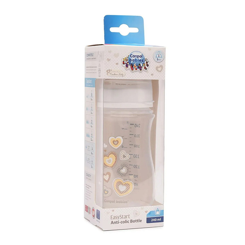 Бутылочка для кормления Canpol Babies Newborn Baby c широким горлом 240 мл, 3+ мес 35/217 бежевый