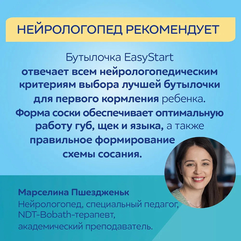 Гарантия легкого начала грудного вскармливания - детская бутылочка позволяет сочетать грудное вскармливание и кормление из бутылочки.