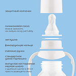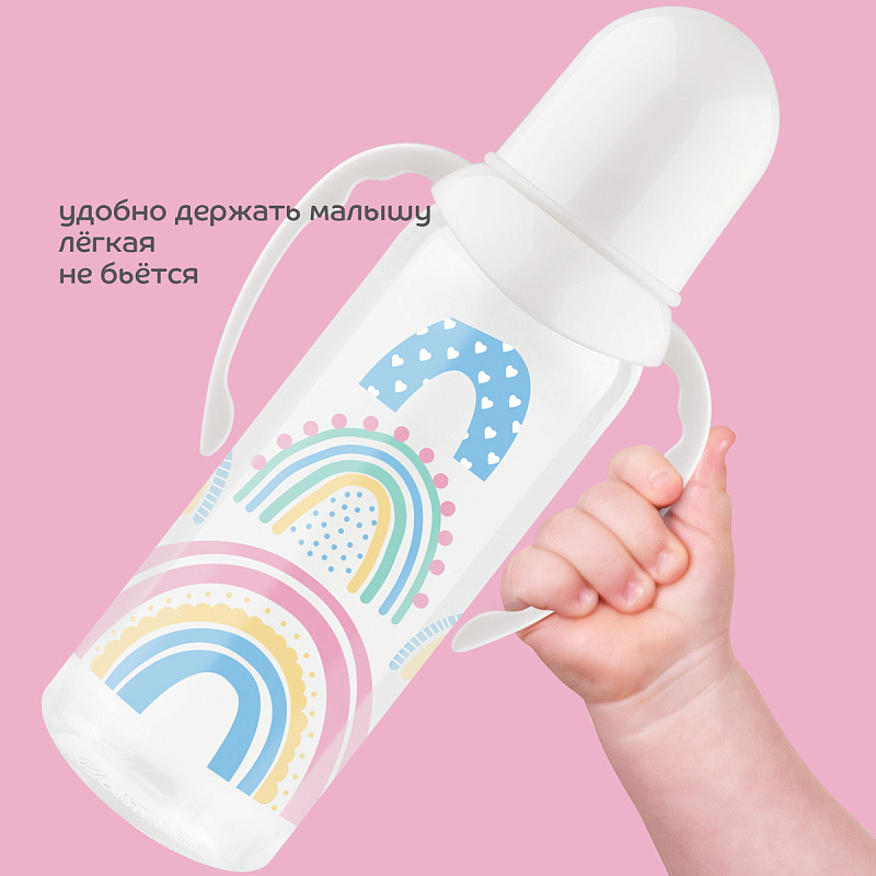 Благодаря ручкам ребенок может самостоятельно держать бутылочку во время кормления. При необходимости ручки можно снять. К бутылочке подходят все молочные соски lubby как латексные, так и силиконовые для бутылочек со стандартным (узким) горлышком.
