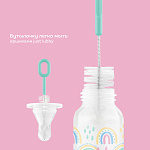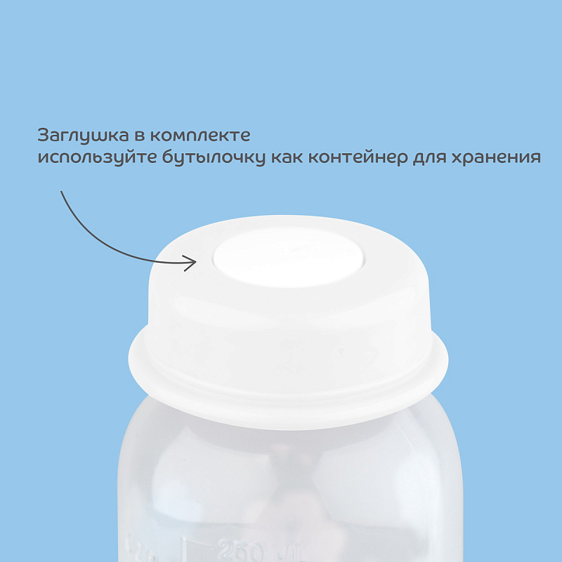 В комплект входит заглушка, позволяющая использовать бутылочку как контейнер. К бутылочке подходят все молочные соски lubby как латексные, так и силиконовые для бутылочек со стандартным (узким) горлышком.