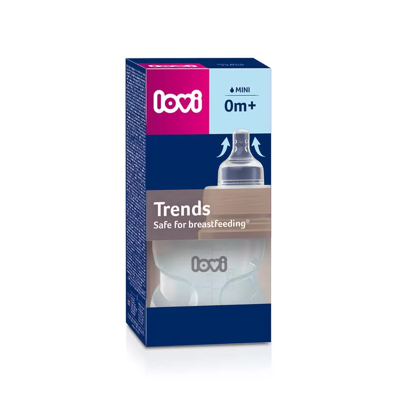 Антиколиковая бутылочка с широким горлом для кормления Lovi Trends с динамической соской была создана специально для новорожденных от 0 месяцев и малышей постарше. Гарантия легкого начала грудного вскармливания; позволяет сочетать грудное вскармливание и кормление из бутылочки. Детская бутылка для воды, молока и смеси оснащена уникальной динамической соской из тонкого силикона, с жестким профилированным основанием и системой отвода воздуха Super Vent. Эффективный антиколиковый клапан (система вентиляции Super Air) предотвращает образование пузырьков воздуха в пище, спасает от коликов и чрезмерного скопления газов. Твердое профилированное основание соски изготовлено из более толстого слоя силикона, предотвращает жевание соски. Контурная форма и соответствующая ширина основания обеспечивают правильное расположение губ детей. Широкое горлышко позволяет легко промывать и наполнять детские бутылки Lovi. Уникальная эргономичная моделированная форма обеспечит комфорт во время кормления малыша. Мягкая силиконовая соска на бутылку - гипоаллергенный силикон не раздражает нежные десна малыша. Динамическая соска стимулирует развитие сосательного рефлекса, способствуя развитию мышц лица. Расширяется и сжимается в такт сосательным движениям новорожденного ребенка. Имитирует грудь мамы. Не содержит Бисфенол А. Бутылочка прекрасно подойдет в набор новорожденным, в роддом, в подарок на выписку, на рождение, день рождения малыша или на 3,6 месяцев или 1 годик (12 месяцев). Рекомендация доктора медицинских наук неонатолога: бутылочки для маленьких детей всегда должны быть высококачественными, изготовленными из безопасных протестированных и сертифицированных материалов. Еще одной важной характеристикой является эффективная система циркуляции воздуха. На все это очень серьезно влияет выбор соски для бутылочки. *Можно использовать в микроволновой печи. *Не рекомендуется мыть в посудомоечной машине.