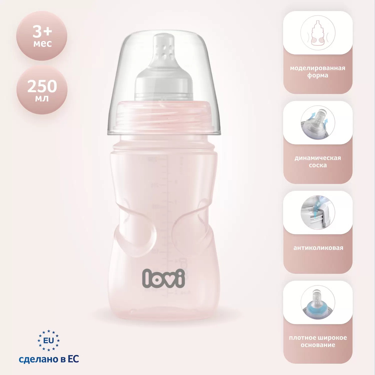 Бутылочка для кормления Lovi Trends 250 мл, 3 мес, 21/563 розовый