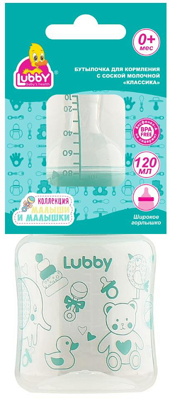 Детская бутылочка для кормления Lubby Классика с широким горлышком и соской молочной 120 мл 0+ мес 20155Нет оценокХарактеристики