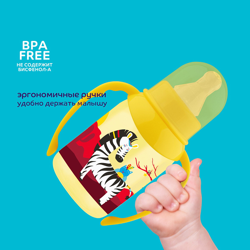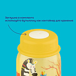 В комплект входит заглушка, позволяющая использовать бутылочку как контейнер. Благодаря ручкам ребенок может самостоятельно держать бутылочку во время кормления. При необходимости ручки можно снять. К бутылочке подходят все молочные соски lubby как латексные, так и силиконовые для бутылочек со стандартным (узким) горлышком.