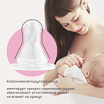 Бутылочка для кормления со стандартным (узким) горлышком оснащена силиконовой молочной соской медленного потока. Выполнена из безопасного материала - полипропилена. Такие бутылочки легкие, не бьются. Силиконовые соски упругие, что способствует развитию жевательного аппарата, не вызывают аллергию. Выпуклая, нестираемая шкала имеет удобный шаг в 30 мл.