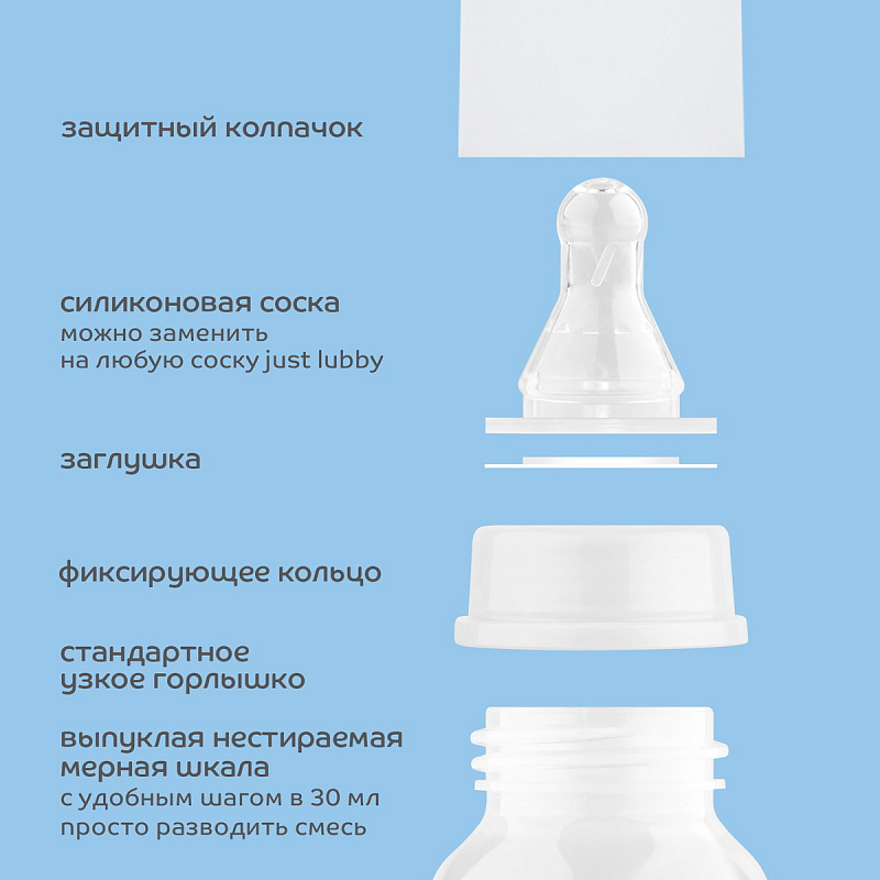 К бутылочке подходят все молочные соски lubby как латексные, так и силиконовые для бутылочек со стандартным (узким) горлышком.
