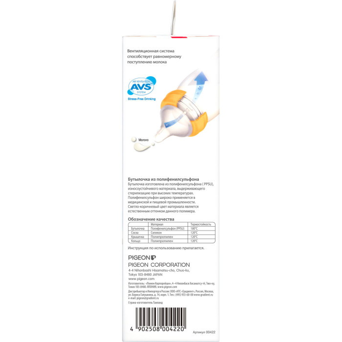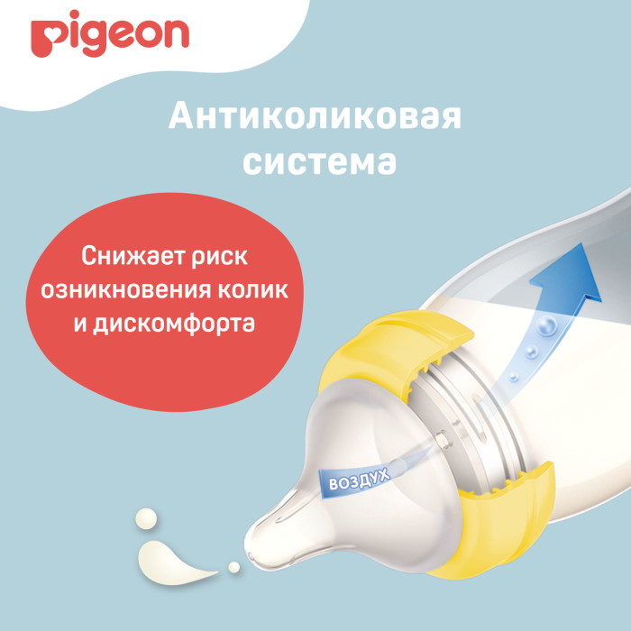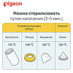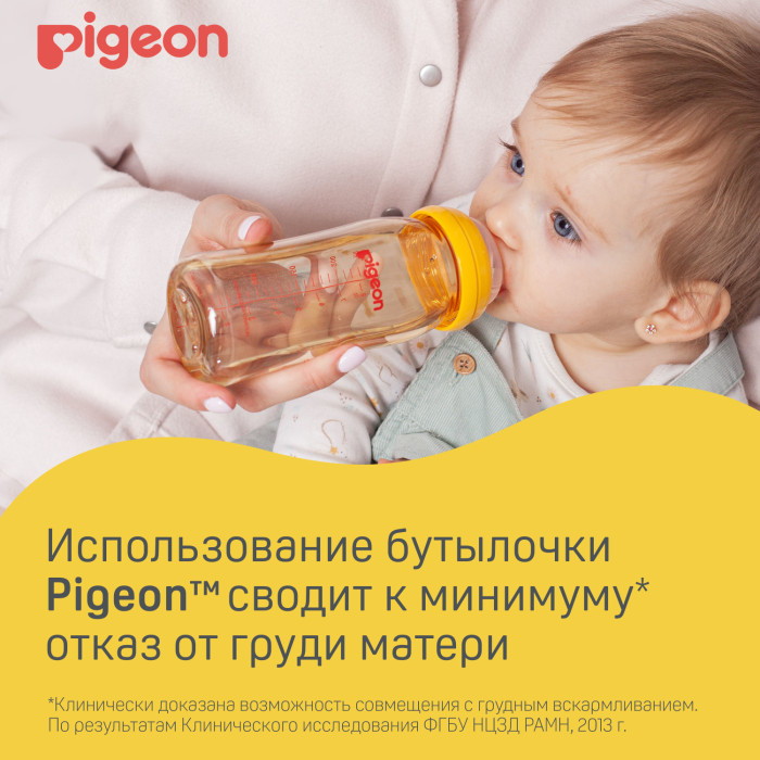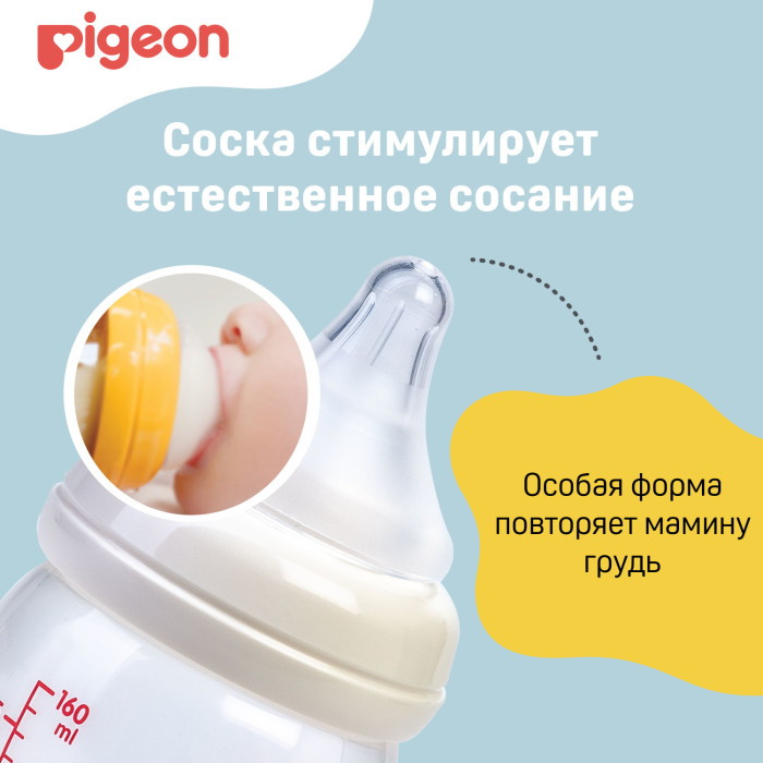 Бутылочка для кормления с физиологической соской разработана специально для грудных младенцев на основе научно-практических исследований лаборатории Pigeon.