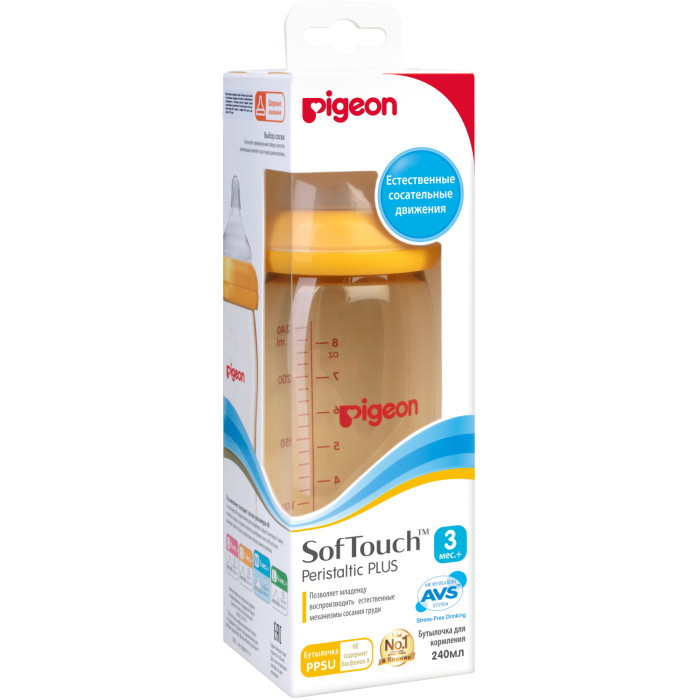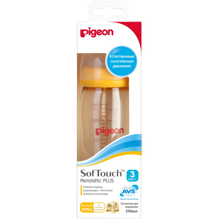 Бутылочка для кормления Pigeon SofTouch Перистальтик плюс 240 мл