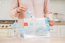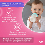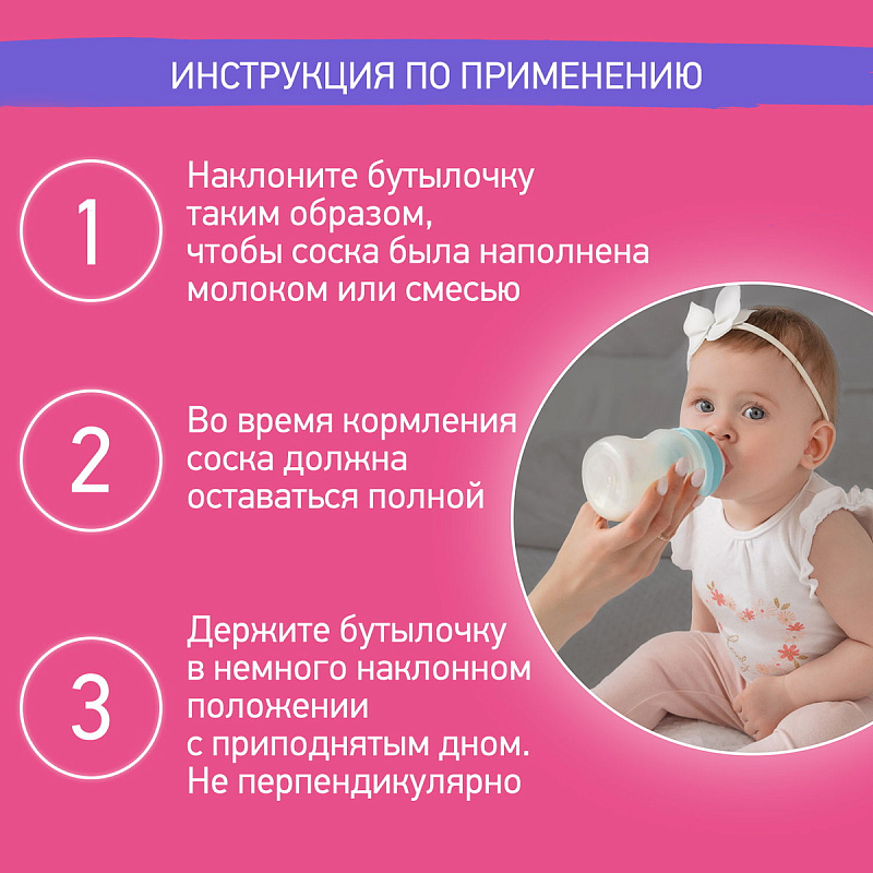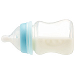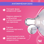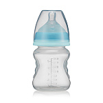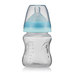 Бутылочка для кормления с силиконовой соской подходит детям от 3 месяцев. Анатомическое основание повторяет форму материнской груди, что позволяет сочетать искусственное и грудное вскармливание. Скорость потока регулируется размером отверстия и точно соответствует возрасту ребенка. Антиколиковый клапан предотвращает чрезмерное заглатывание воздуха и возникновения колик. Бутылочка имеет удобную для захвата форму. Маленький объем исключает возможность перекармливания. Разборная конструкция и широкое горлышко обеспечивают простой уход. Легкий корпус бутылочки сделан из полипропилена, поэтому ее можно стерилизовать кипячением. Выпуклая мерная шкала не стирается и позволяет использовать изделие в течение длительного срока.