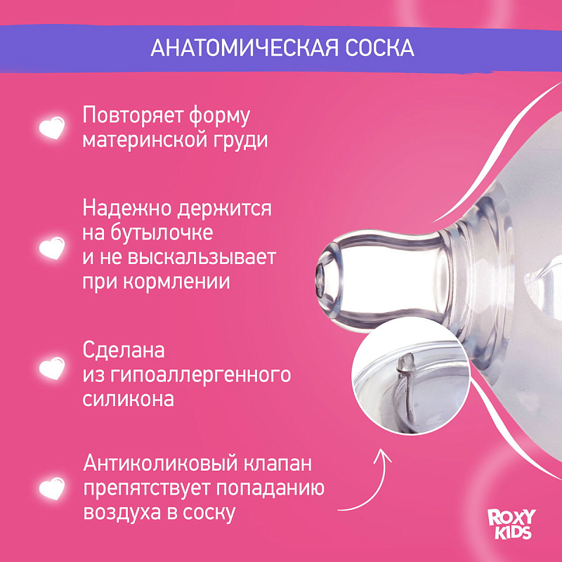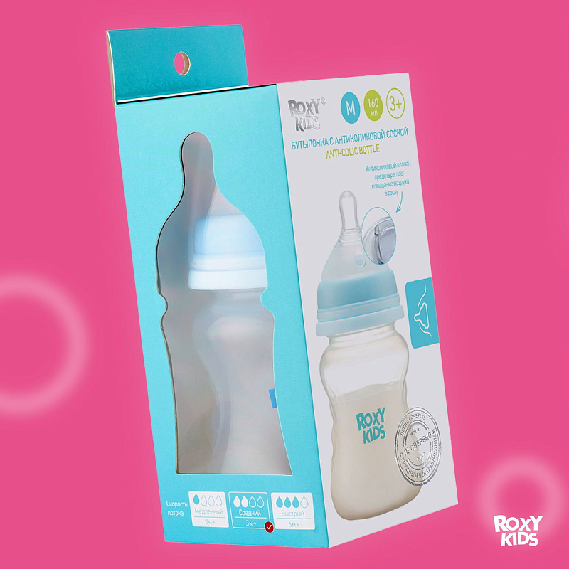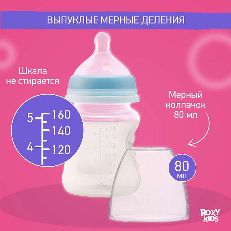 Бутылочка для кормления Roxy-Kids 160 мл, средний поток, 3 мес+