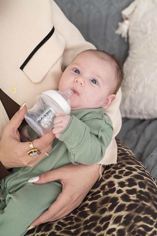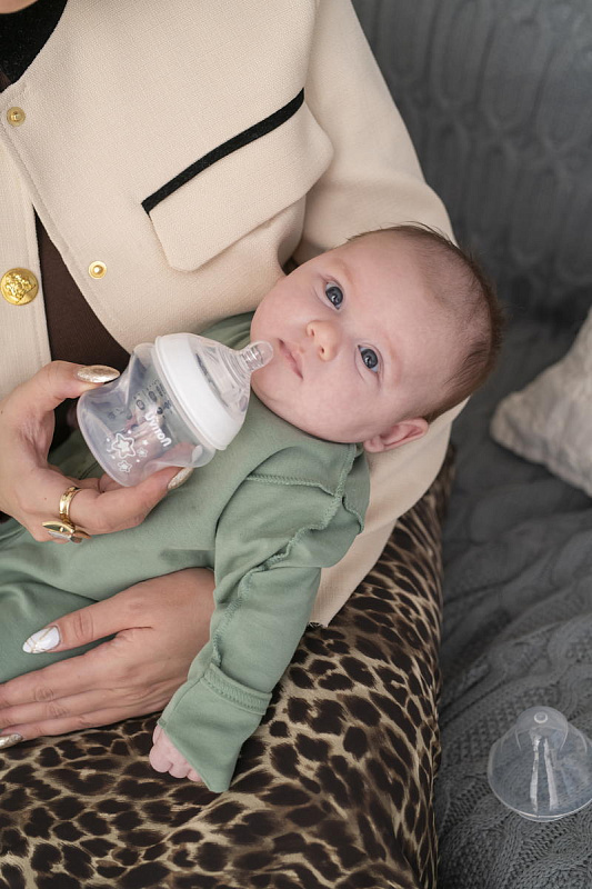 Соска оснащена антиколиковым клапаном, который предотвращает попадание воздуха при кормлении. Минимизируя тем самым симптомы колик у малышей.