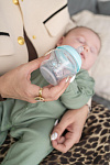 Соска оснащена антиколиковым клапаном, который предотвращает попадание воздуха при кормлении. Минимизируя тем самым симптомы колик у малышей.