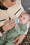 Соска из сверхмягкого силикона, из нескольких слоев силикона имеет специальную форму, напоминающую грудь. Способствует комфортному кормлению, естественному вытягиванию соски.