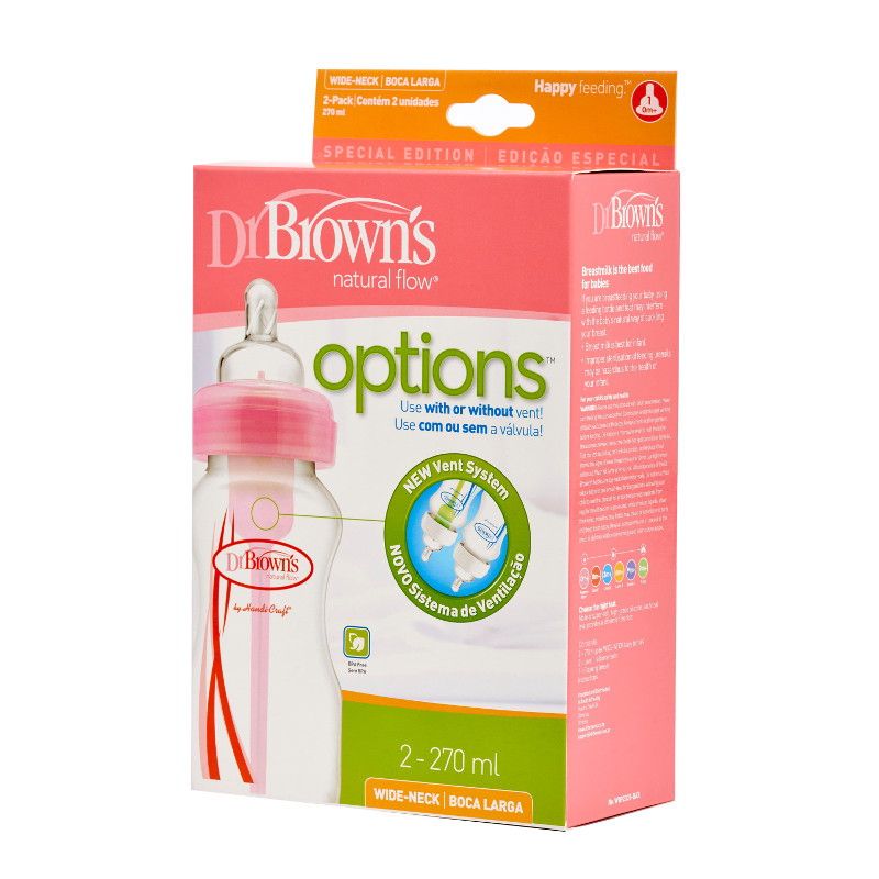 Бутылочка Dr Brown Options с широким горлышком, розовая, набор из 2-х, 270 мл 92305Нет оценокХарактеристики