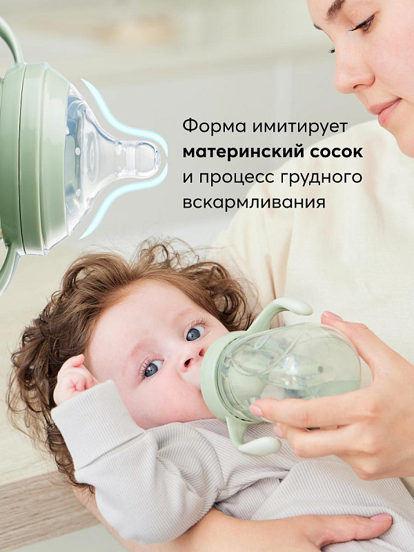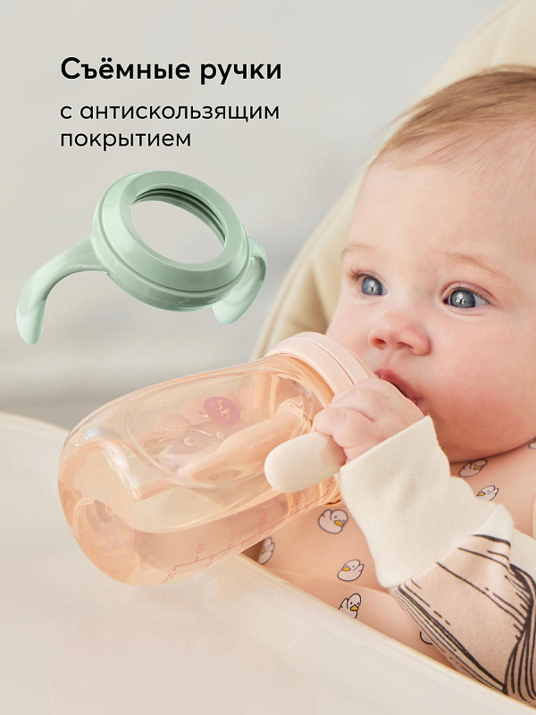 Бутылочка имеет съемные ручки с антискользящим покрытием.