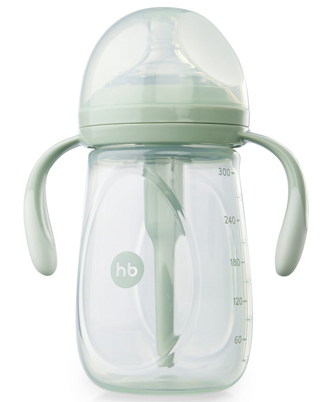 Бутылочка с ручками Happy Baby с силиконовой соской 300 мл sage
