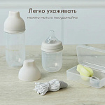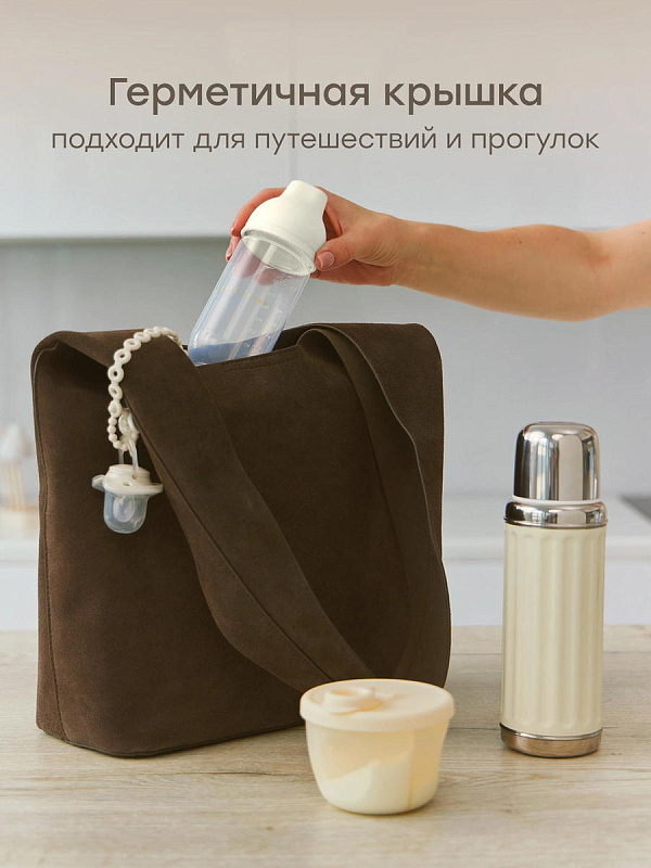 Эта разработка сочетает в себе все необходимые функции: силиконовая соска с медленным потоком обеспечивает комфортное кормление, а компактный размер позволяет брать бутылочку с собой в любое путешествие. Широкое горло (5 см) облегчает наполнение и чистку, а герметичная крышка защищает от случайных проливов.