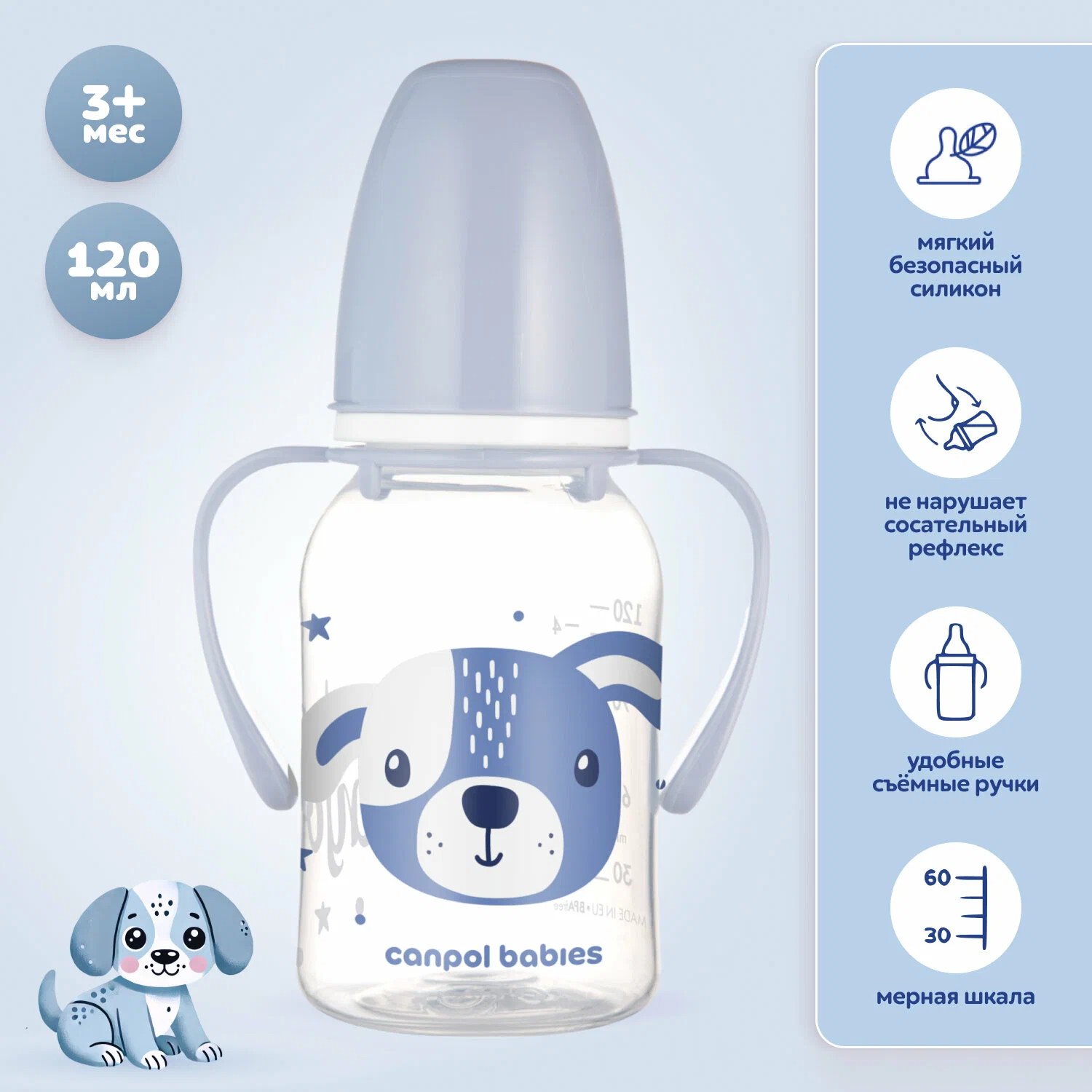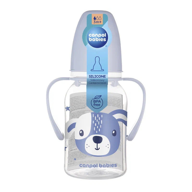 Бутылочка тритановая Canpol Babies Cute animals с ручками 120 мл. 11/823 голубая собачкаНет оценокХарактеристики