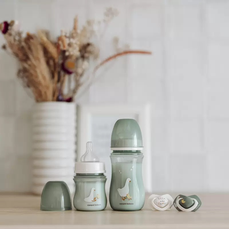 Антиколиковая детская бутылочка для кормления новорожденных детей Canpol babies коллекции Goose была создана специально для детей с первых дней жизни.