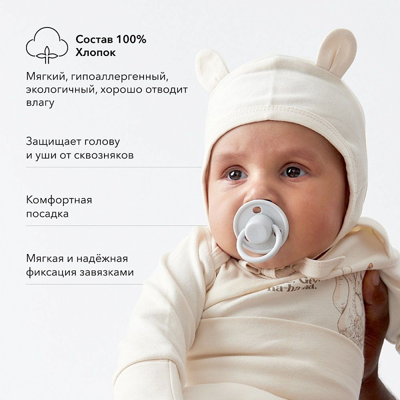 Набор чепчиков идеален для новорожденных. Продуманное лекало обеспечивает правильную посадку и комфорт. Завязки мягко и надежно фиксируют чепчик на голове, при этом уши малыша полностью закрыты. Чепчики сшиты из 100% хлопка – гипоаллергенный экологичный материал хорошо отводит влагу, нежно касается кожи и защищает малыша от перегрева.