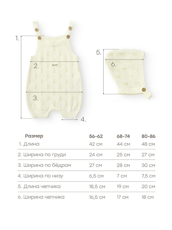 Чепчик и полукомбинезон Happy baby 90143-0 ЧЗ молочный / milky 56