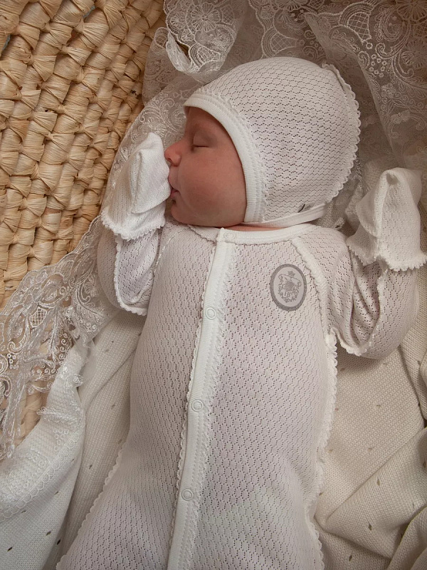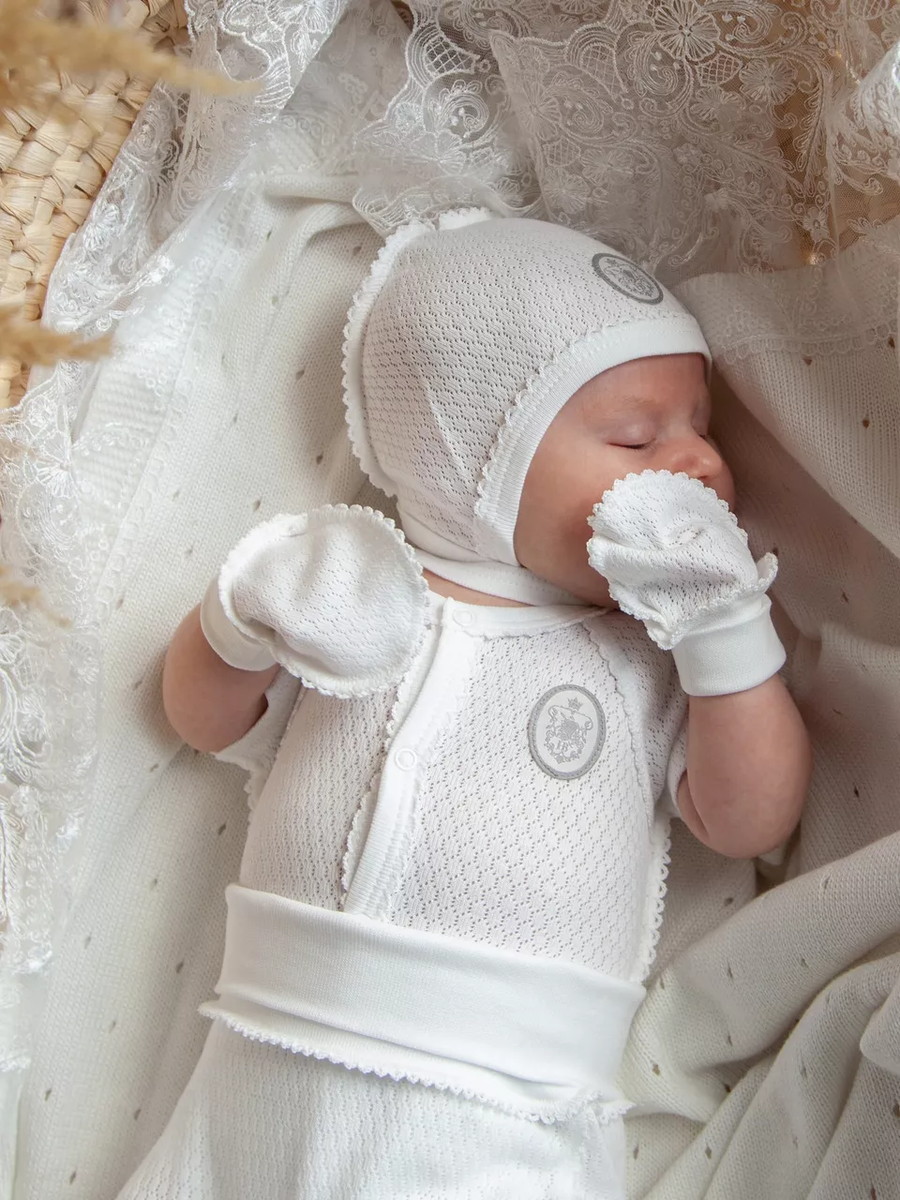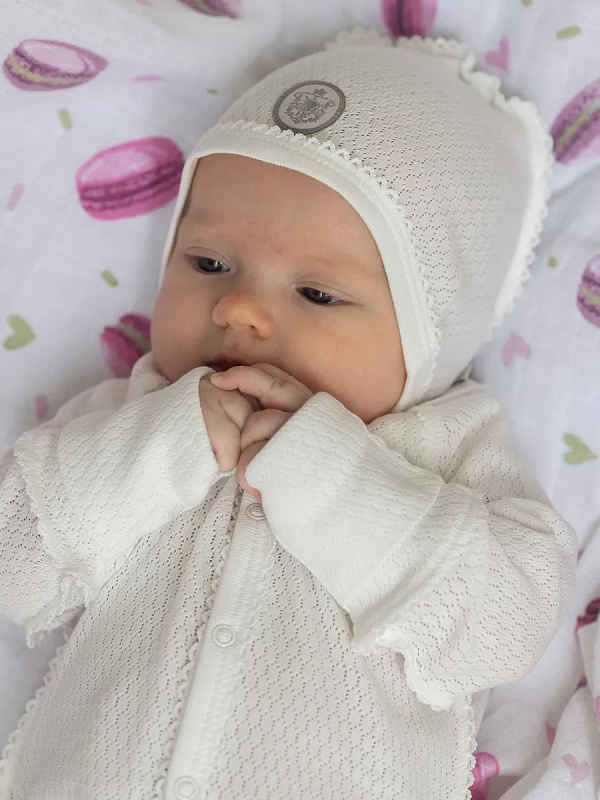Нежнейший чепчик подарит малышу комфорт и удобство с первых дней жизни. Чепчик изготовлен из натурального хлопка, приятного к телу и абсолютно безопасного для грудного ребенка. Чепчик выполнен швами наружу, что предотвращает натирание головки. Мягкий чепчик защищает родничок, сохраняет тепло и создаёт комфорт для сна и активности малыша. Удобные завязочки позволяют чепчику регулировать посадку по голове и не сползать на глаза. Чепчик оберегает голову и ушки младенца от переохлаждения и сквозняков.