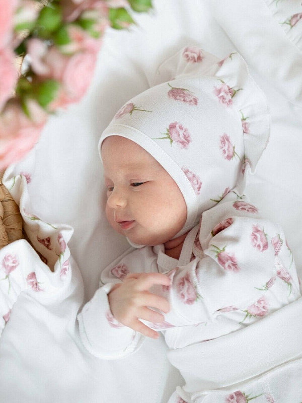 Нежнейший чепчик с очаровательной рюшей подарит малышке комфорт и удобство с первых дней жизни. Чепчик изготовлен из органического хлопка, приятного к телу и абсолютно безопасного для грудного ребенка, только что появившегося на свет. Чепчик оберегает голову и ушки младенца от переохлаждения и сквозняков. Удобные завязочки позволяют чепчику регулировать посадку по голове и не сползать на глаза. Мягкий чепчик защитит родничок, сохранит тепло и создаст комфорт для сна и активности малыша.