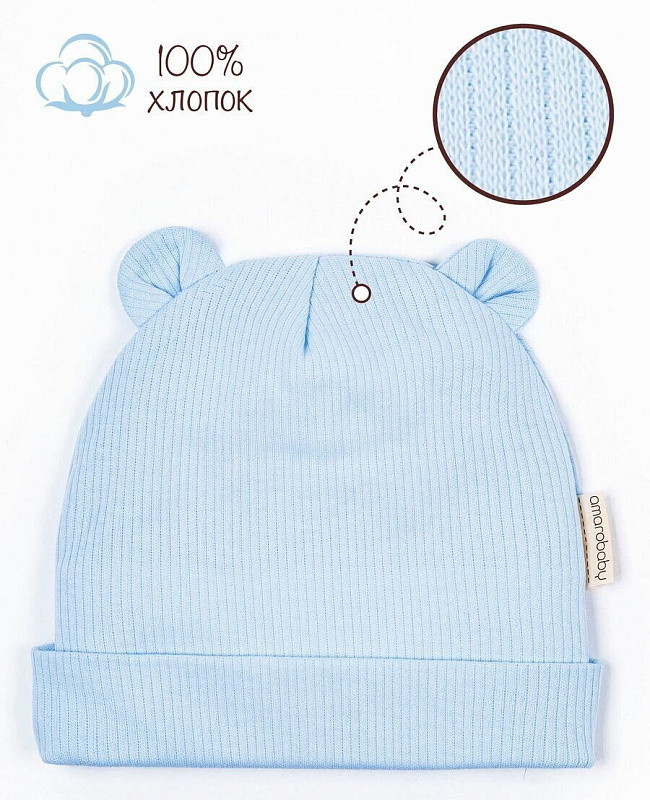 Чепчик (шапочка) AmaroBaby Fashion bear ЧЗ голубой 40