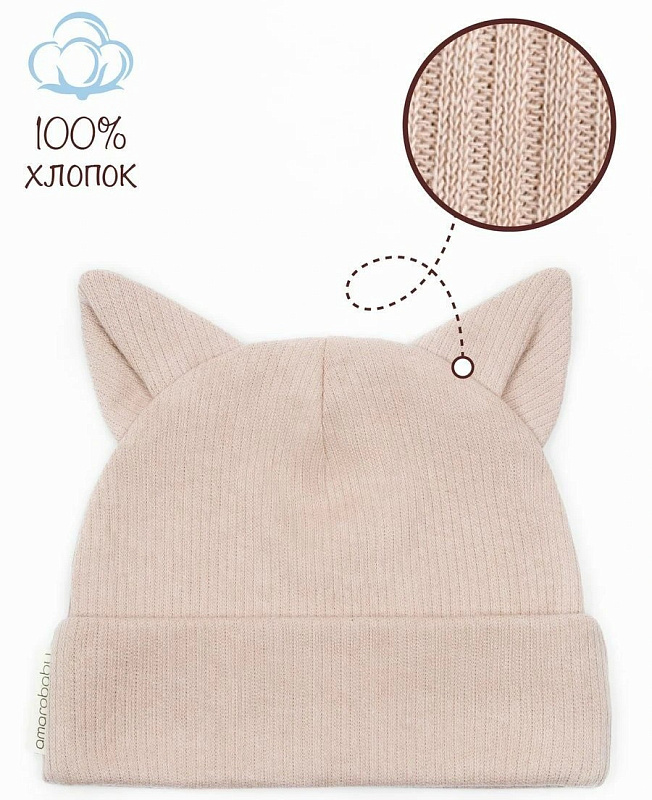 Чепчик (шапочка) AmaroBaby Fashion Cat New ЧЗ бежевый 42