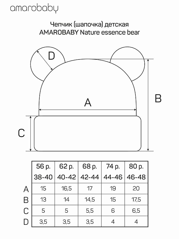 Чепчик (шапочка) AmaroBaby Nature essence bear бежевый 38