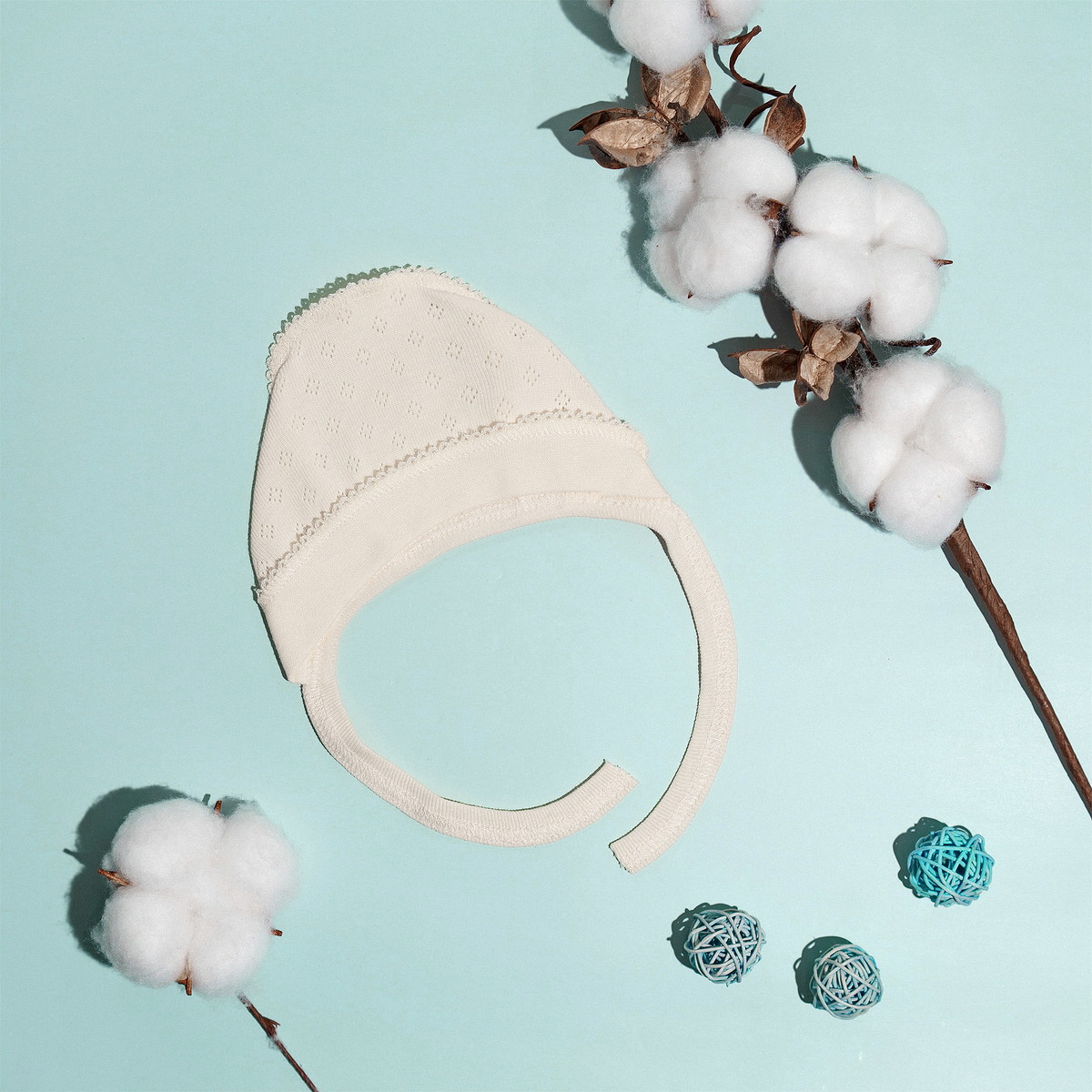 Чепчик Vikalex «Ажур экрю» — идеальное дополнение к гардеробу вашего малыша. Этот чепчик изготовлен из высококачественного хлопкового трикотажа, который обеспечивает комфорт и мягкость. Благодаря уникальному дизайну со швами наружу, этот чепчик станет стильным и практичным элементом гардероба вашего малыша.