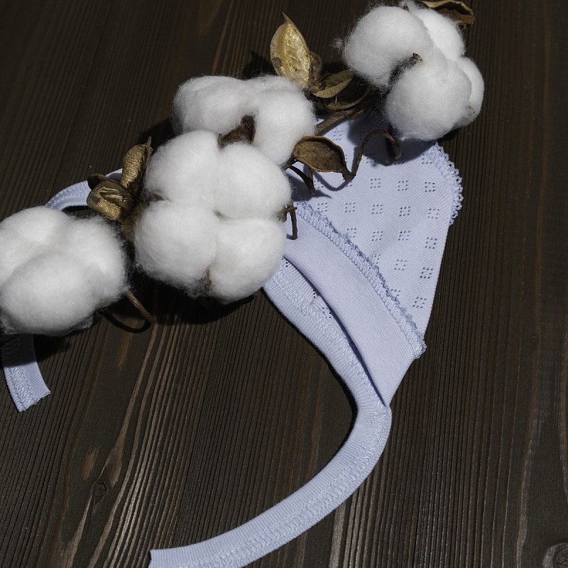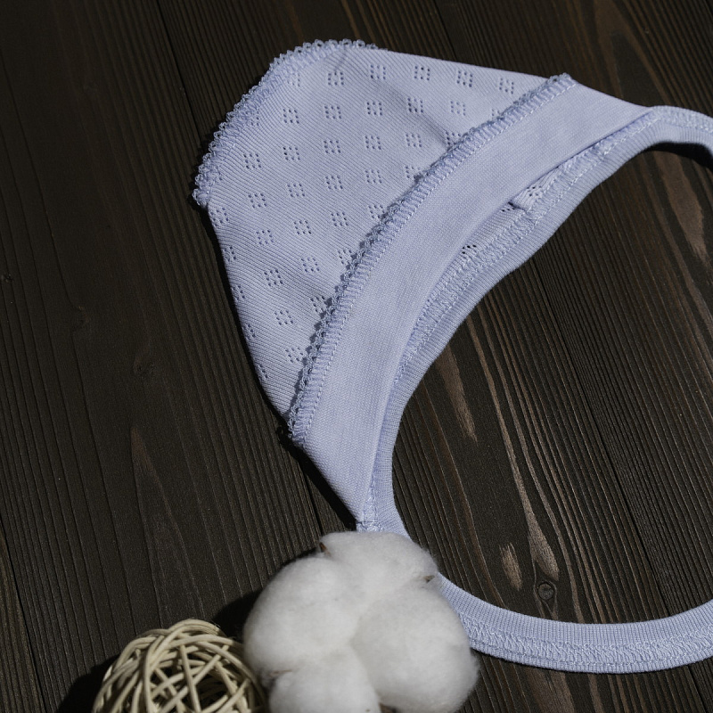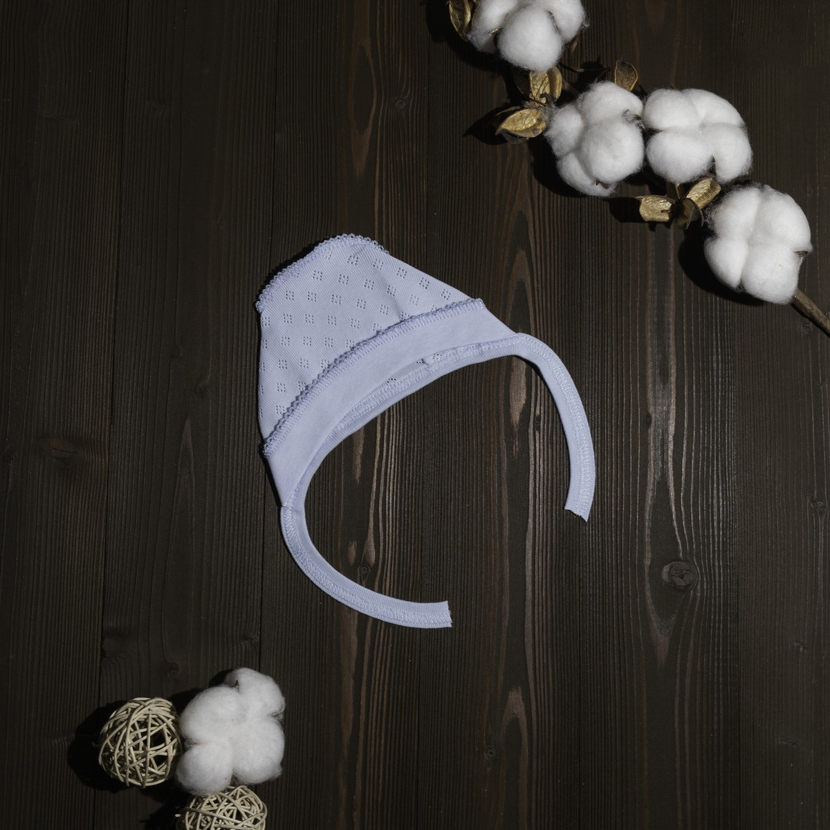 Чепчик Vikalex Ажур голубой — идеальный выбор для вашего малыша. Он изготовлен из мягкой и дышащей ткани, которая обеспечивает комфорт и свежесть. Удобная модель с завязками не раздражает нежную кожу ребёнка. Швы изделия расположены снаружи, что предотвращает натирание. Этот чепчик — отличный вариант для защиты головки вашего малыша.