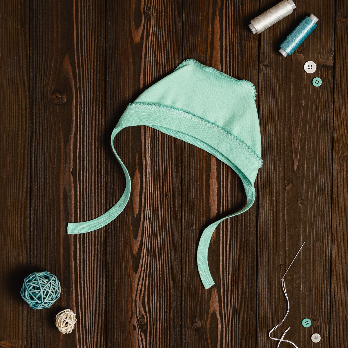 Чепчик выполнен из натуральной дышащей ткани. Модель с удобными завязочками, которые не будут натирать нежную кожу малыша. Швы наружу не придают дискомфорта. Ткань хорошо пропускает воздух благодаря натуральному составу.