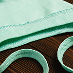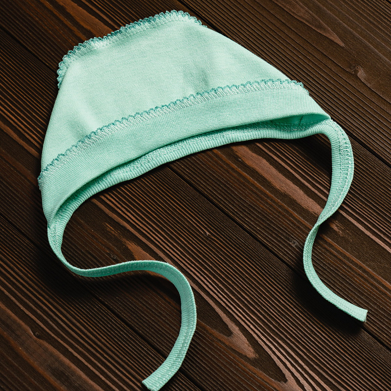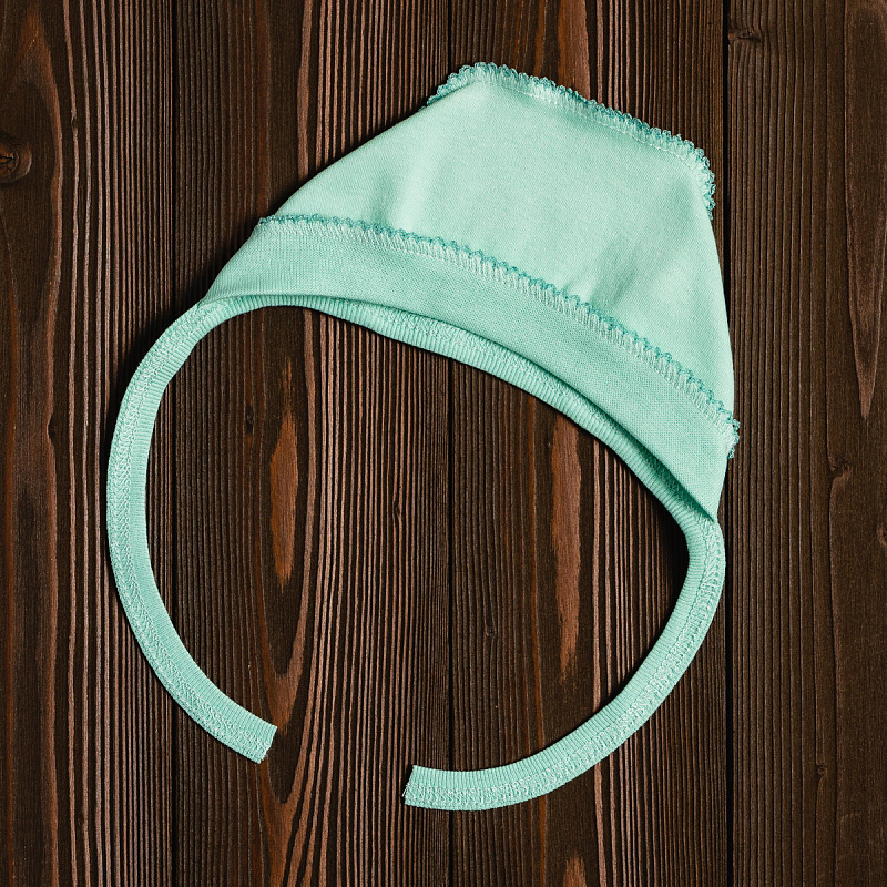 Чепчик выполнен из натуральной дышащей ткани. Модель с удобными завязочками, которые не будут натирать нежную кожу малыша. Швы наружу не придают дискомфорта. Ткань хорошо пропускает воздух благодаря натуральному составу.