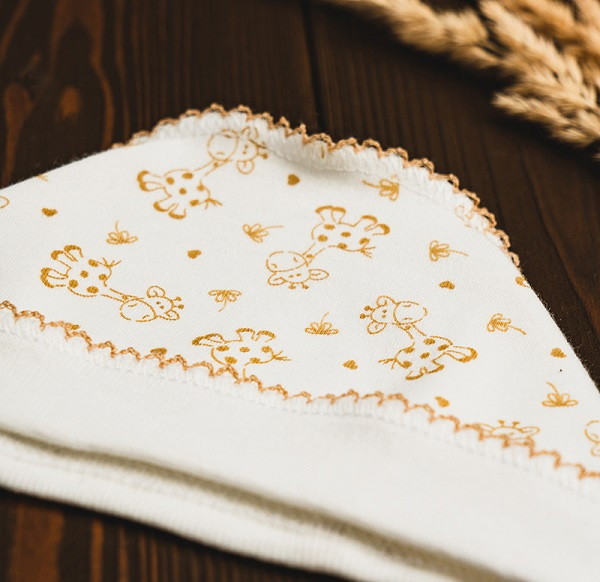 Чепчик выполнен из натуральной дышащей ткани и украшен рисунками. Модель с удобными завязочками, которые не будут натирать нежную кожу малыша. Швы наружу не придают дискомфорта. Ткань хорошо пропускает воздух благодаря натуральному составу.