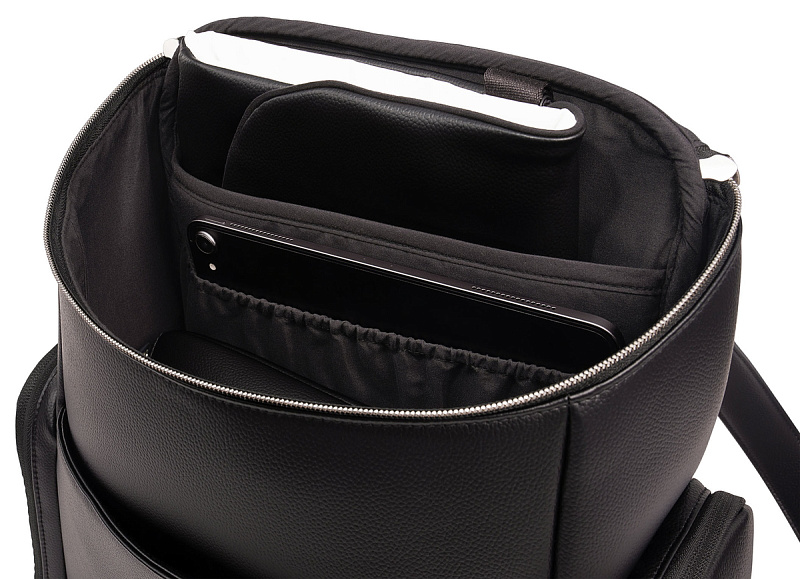 Сумка Essential переосмысливает повседневную роскошь благодаря своему элегантному дизайну из эко-кожи и универсальной функциональности для родителей. Это многофункциональный продукт, в который можно положить подгузники и ноутбук. Он имеет продуманный набор внешних и внутренних карманов, матрасик для пеленания и удобно умещается поверх чемодана на колесиках.