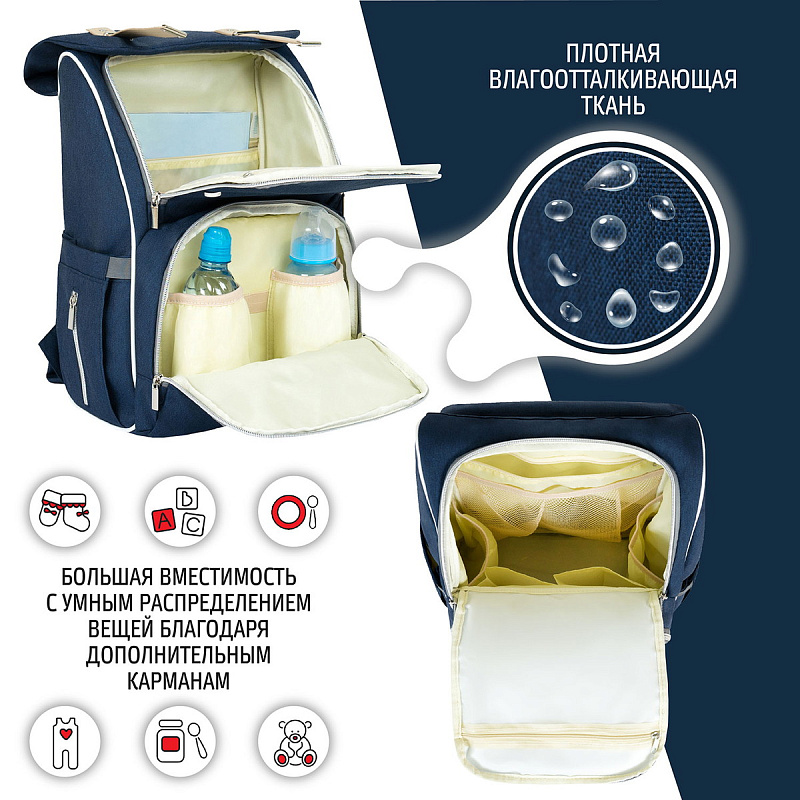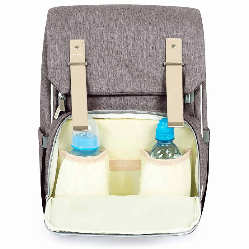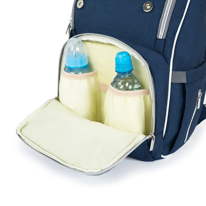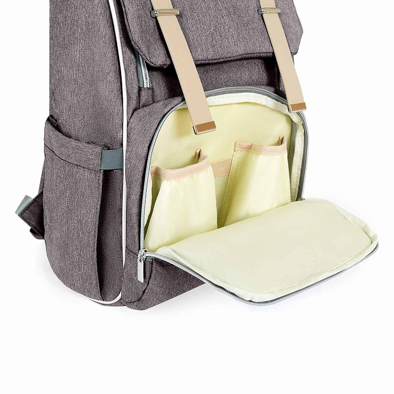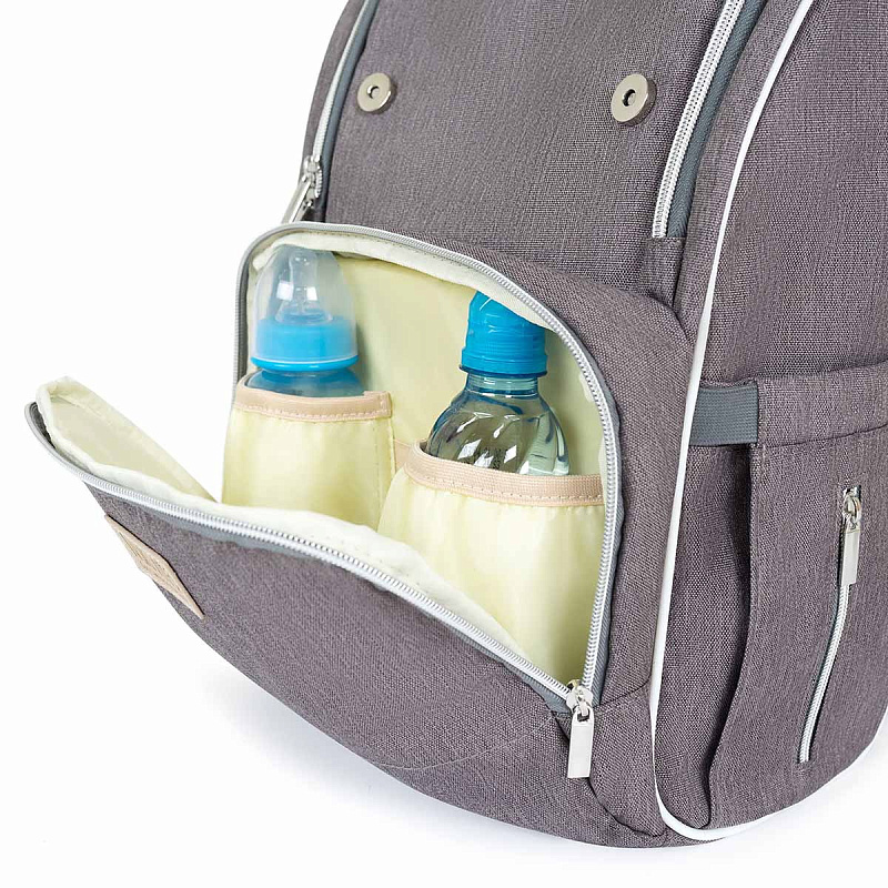 - Для бутылочек и салфеток имеются наружные карманы с быстрым доступом. Боковые карманы на резинке.