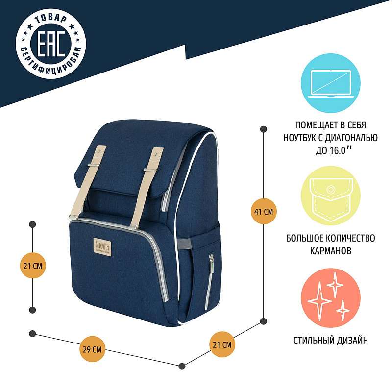 Cумка-рюкзак для мамы Nuovita Capcap Rotta Blu scuro/Темно-синий
