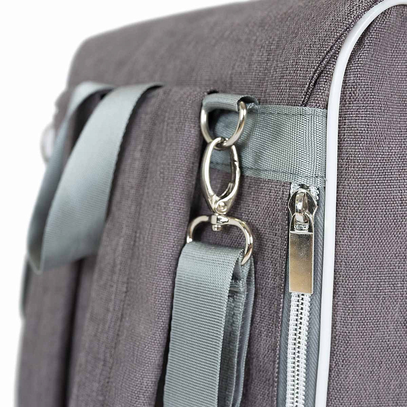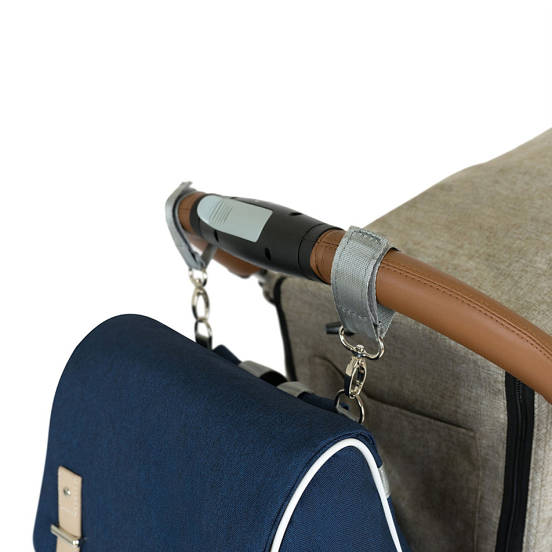 - Для крепления на ручке коляски имеются ремни с карабинами.