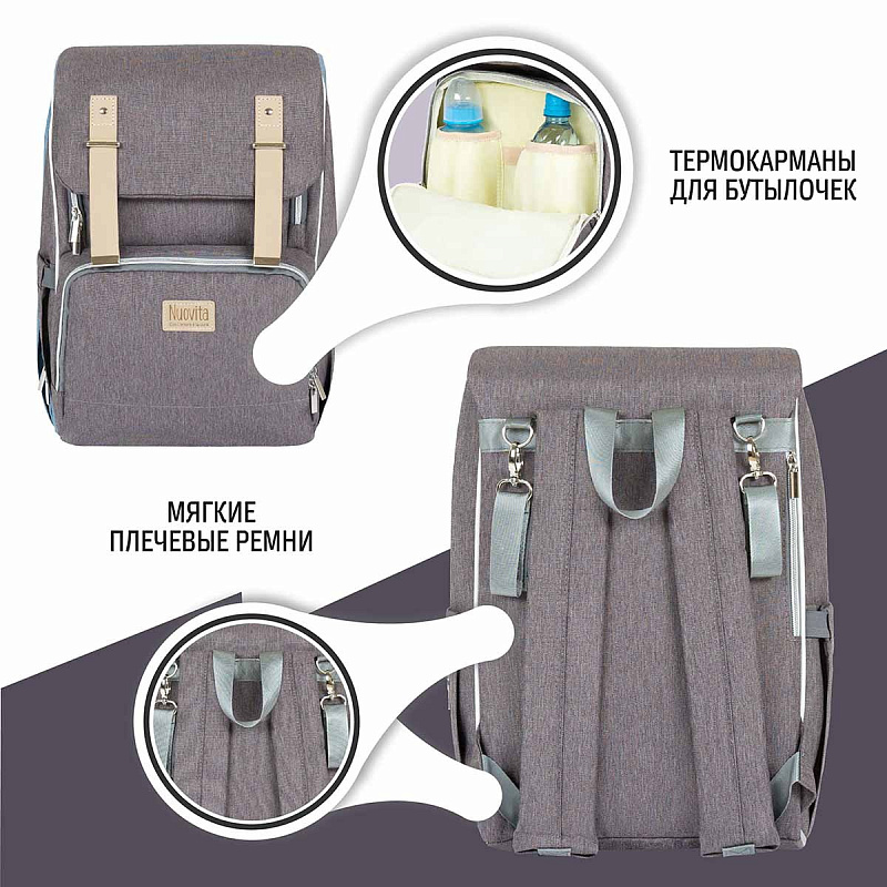 - Этот элегантный рюкзак для мамы имеет анатомическую форму и небольшой вес. Лямки с регулировкой и мягкими накладками снижают нагрузку на спину.