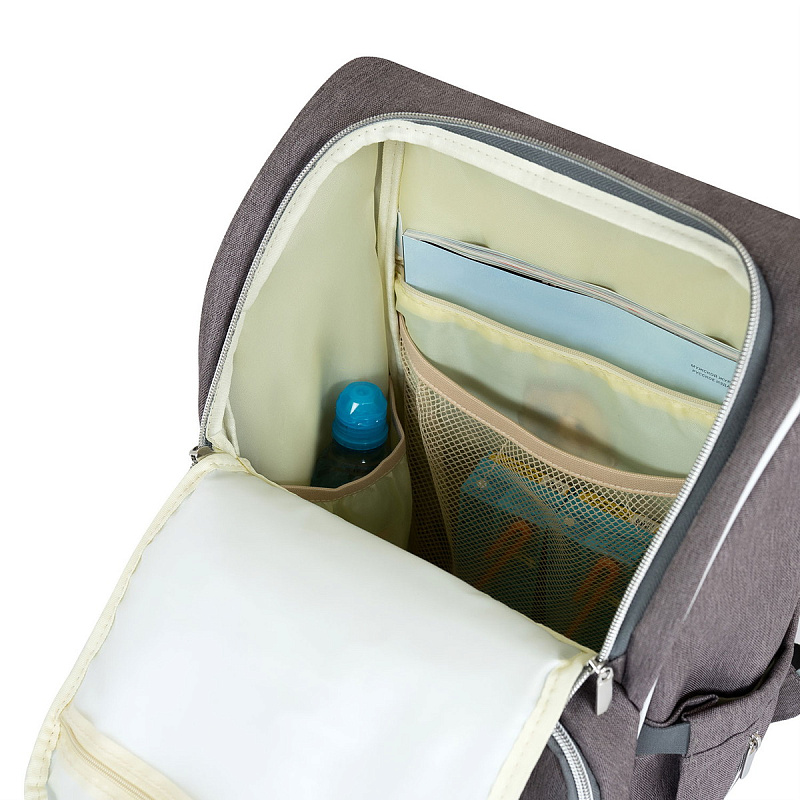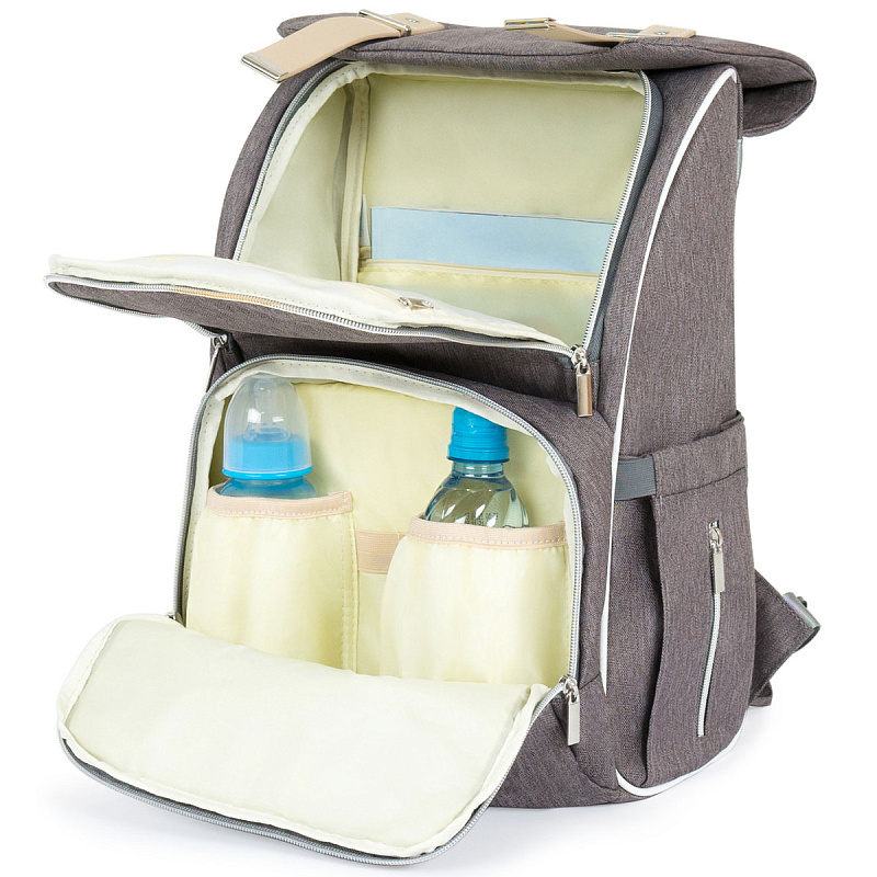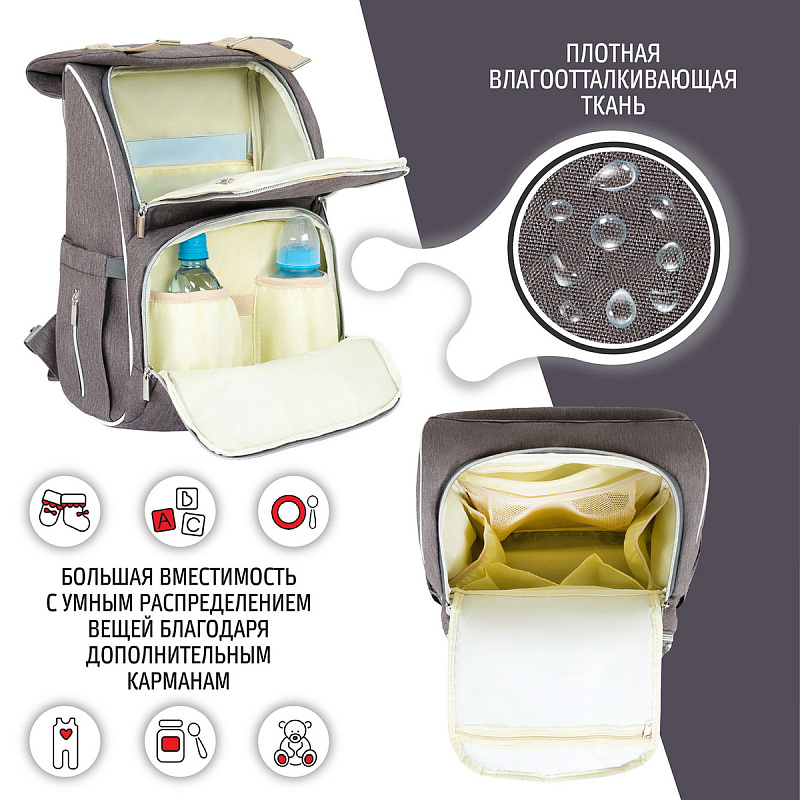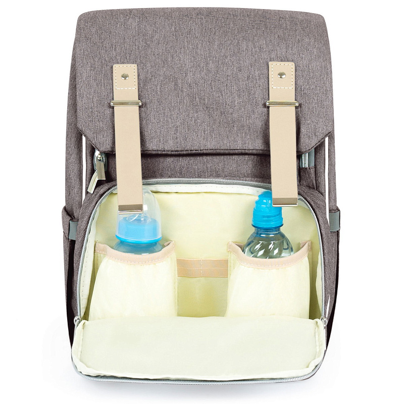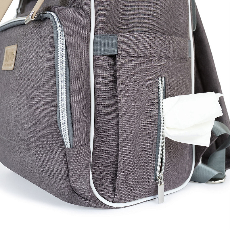 - Для бутылочек и салфеток имеются наружные карманы с быстрым доступом. Боковые карманы на резинке.