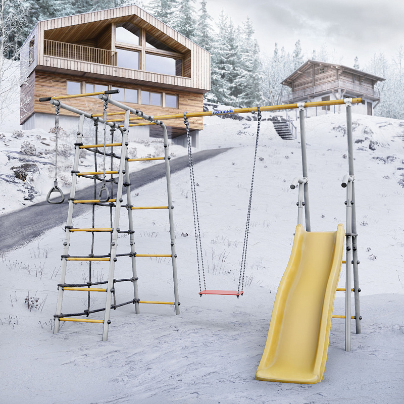 Дачный спортивный комплекс нового поколения ROMANA «Богатырь» — настоящая находка для активных и подвижных детей. Прекрасное приобретение для дачи или загородного дома. Маленький искатель приключений будет просто в восторге, а родители cмогут любоваться как малыш растет, крепнет и превращается в самого настоящего богатыря! В дачном комплексе предусмотрена удобная и безопасная горка, рядом с которой располагаются качели. Другая часть комплекса состоит из лестницы и турника, а также канатного лаза, сделанного из шнура повышенной прочности. В комплекте также предусмотрены гимнастические кольца. Все навесное оборудование выполнено из атмосферостойких материалов — в летнее время их можно не убирать в дом после занятий. Приключения обещают быть захватывающими! Конструкция комплекса прочная и выдерживает человека весом 100 кг (нагрузка при испытаниях комплекса — 200 кг). Дачный комплекс ROMANA «Богатырь» достаточно компактный и не займет много места на придомовом участке. ROMANA «Богатырь» — отличный выбор для родителей, которые хотят занять своих домочадцев активными играми на лоне природы!