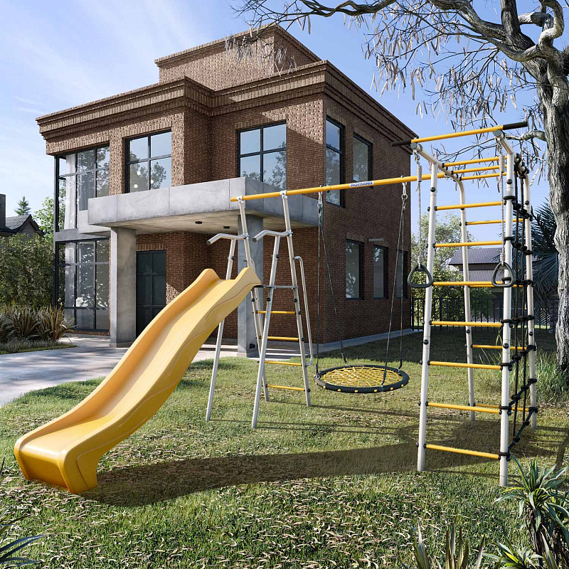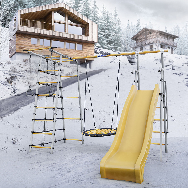 Дачный комплекс Romana Богатырь MAX + качели-гнездо 80 см 103.07.07 серый/жёлтый