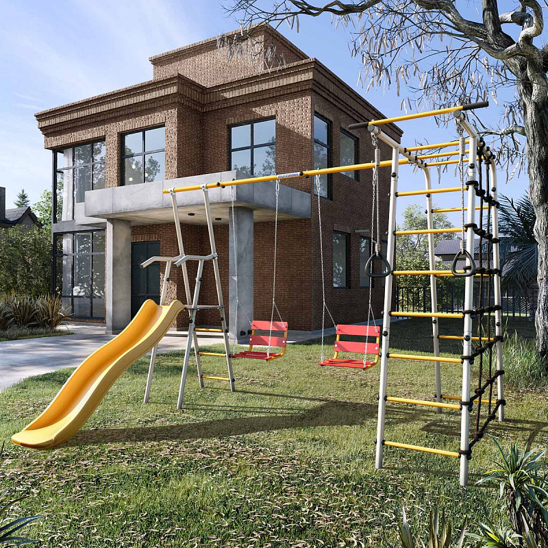 Дачный комплекс Romana Богатырь Плюс 2 + цепные качели 103.12.06 серый/желтый