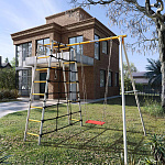 Комплектация площадки включает в себя качели, скалодром-сетку и кольца гимнастические. Ваши дети смогут насладиться качелями, прыжками и кувырканиями, развивая свои навыки и силу.