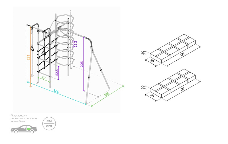 В набореканат, кольца, веревочный лаз, лаз кольцевой, турник неподвижный, качели диск