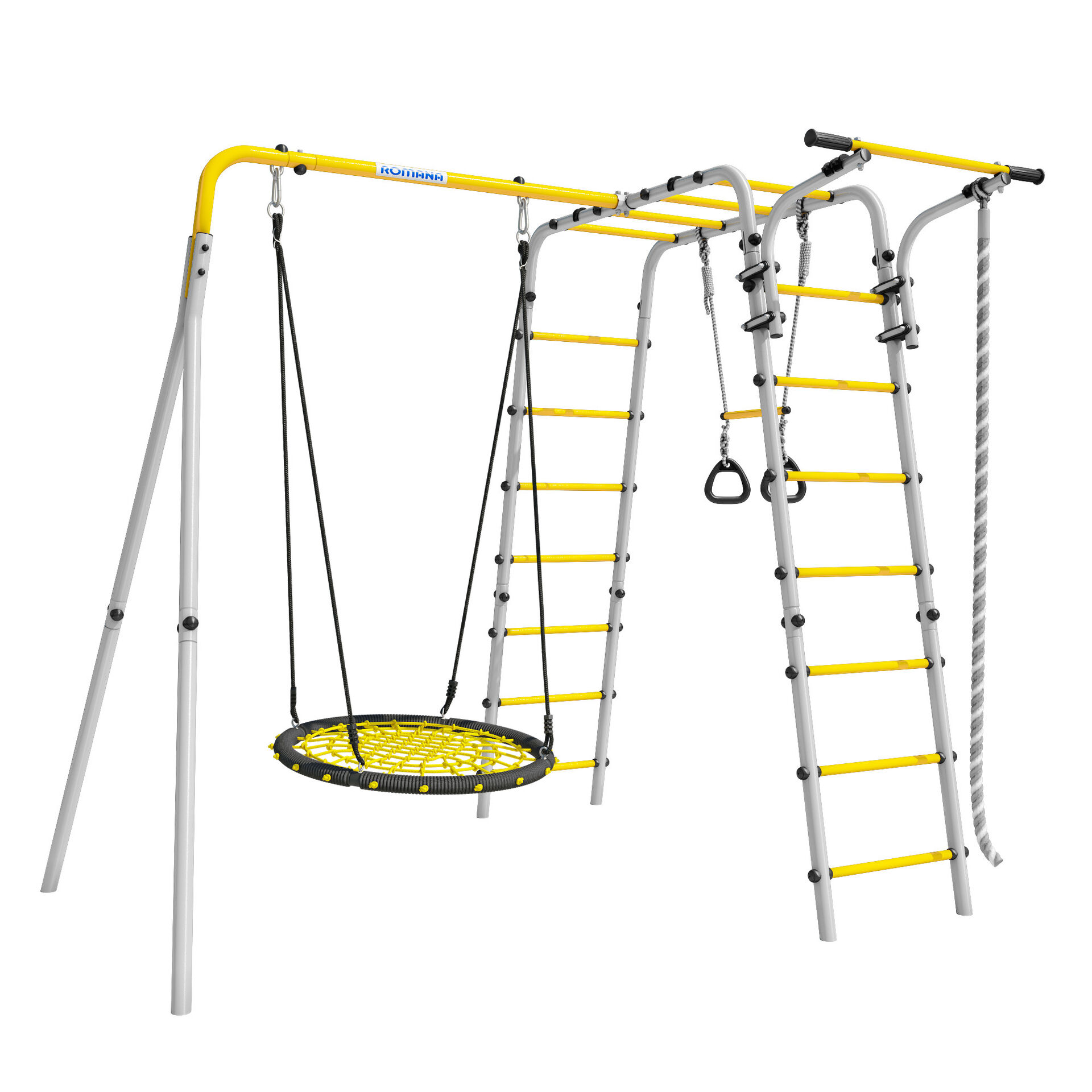 Дачный комплекс Romana Весёлая лужайка 2 + качели-гнездо 80 см R 103.25.04 серый/жёлтый