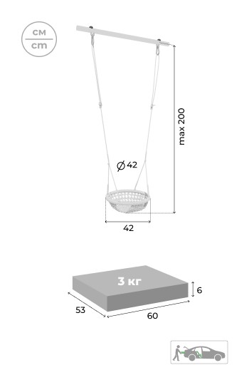 В набореканат, кольца с перекладиной, гимнастическая лестница, рукоход, турник подвижный, качели сетка